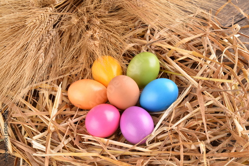 © lauro55, Fototapeta premium colorful easter eggs on straw