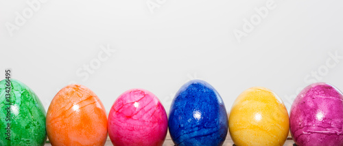 © frederikloewer, Obraz premium Colorful Easter Eggs on White Background