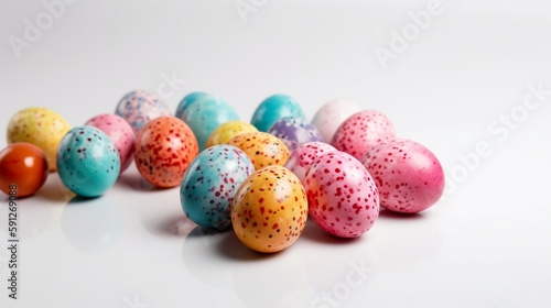 Obraz premium Colorful easter eggs on white background, created with Generative AI