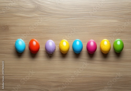 Obraz premium Colorful Easter Eggs on Wooden Background