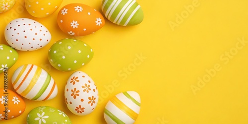© uvesh, Fototapeta premium Colorful Easter Eggs on Yellow