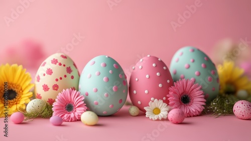 Fototapeta premium Colorful easter eggs with floral decorations for spring celebration designs
