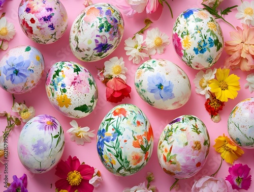 © bvbflo1, Fototapeta premium colorful easter eggs with flowers
