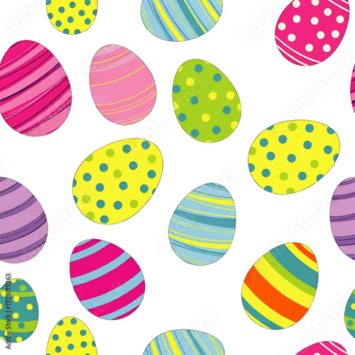 © yogihardiktaginting, Fototapeta premium Colorful Easter eggs with various patterns and designs.