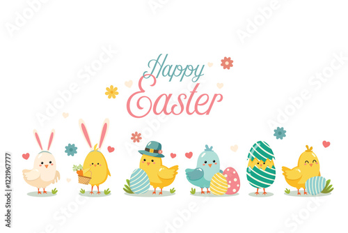 Obraz premium Colorful easter vector illustration with cute chicks birds