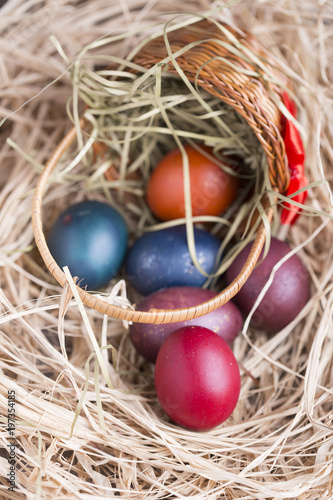 © arizanko, Fototapeta premium Colorful eastern eggs. Copy space. Selective focus
