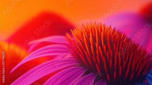 © volga, Obraz premium Colorful echinacea flower close-up with vibrant warm-toned background