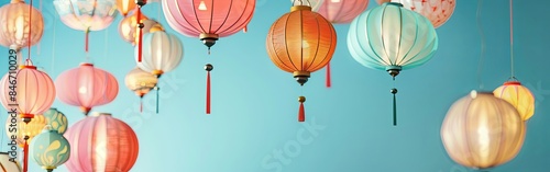 Obraz premium Colorful Eid Lanterns Floating on Pastel Sky
