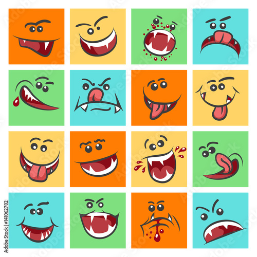 © K3Star, Naklejka premium Colorful emoticon faces vector illustration. Cute mood icons or facing emoticons