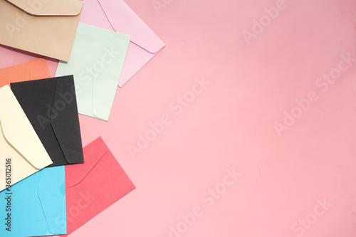 Fototapeta premium colorful envelope on pink background with copy space.
