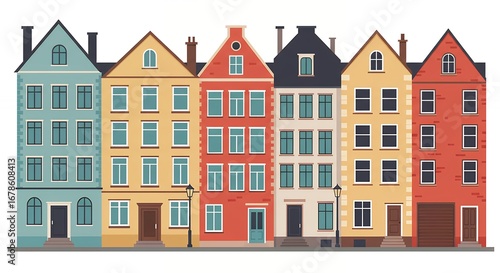 © Anita, Fototapeta premium Colorful european style building illustration