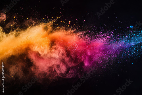 © inas, Fototapeta premium Colorful explosion of vibrant powder in mid-air on black background representing energy, creativity and celebration