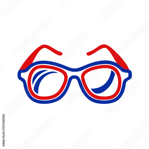 Fototapeta premium Colorful eyeglasses icon with red and blue frame, stylish accessory concept