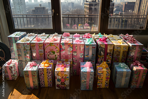 © Swaha, Fototapeta premium Colorful Fabric Bundles in Warehouse