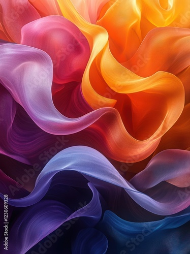 Fototapeta premium Colorful fabrics flow, background blurred, possible wallpaper
