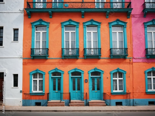 Obraz premium Colorful Facade of Orange and Blue Building