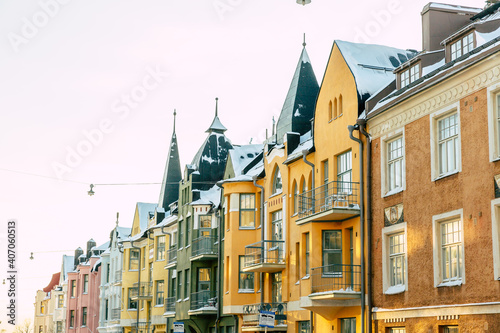 Naklejka premium Colorful facades of buildings in Helsinki, the capital of Finland, the...