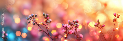 Fototapeta premium Colorful fairy lights with small flowers at night Generative AI