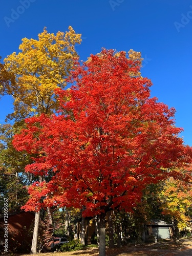 Naklejka premium Colorful fall tree in neighborhood of Michigan