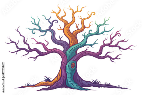 Obraz premium Colorful fantasy tree illustration vector graphic design for magical forest...