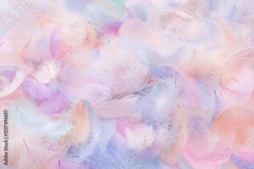 © Nikolay, Fototapeta premium Colorful feather background, top view.