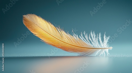 Obraz premium Colorful feather resting on a surface with a soft gradient background during...