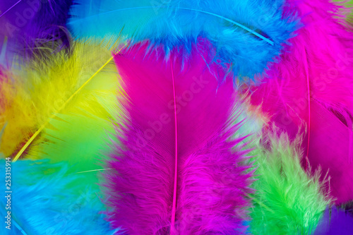 Obraz premium Colorful feather texture. Fluffy background. Top view