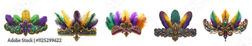 Fototapeta premium Colorful Feathered Mardi Gras Headdress with Intricate Beadwork and Vibrant Patterns on transparent background, png