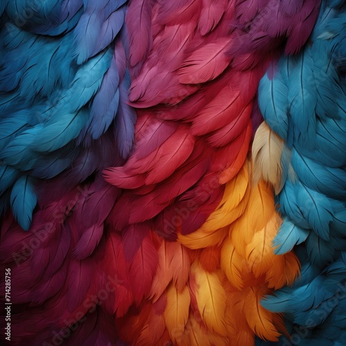 © Taddeus, Obraz premium Colorful feathers as a background. Close-up. Texture.