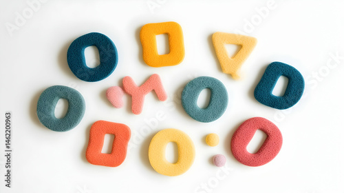 © scbranded, Fototapeta premium Colorful felt shapes on white background