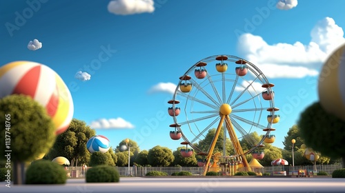 Fototapeta premium Colorful ferris wheel attracts visitors in a vibrant amusement park under a...