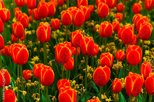 Obraz premium Colorful field of tulips, Netherlands. Keukenhof park, Holland. Flower...