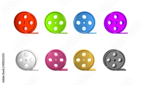 © Oksana, Fototapeta premium Colorful Film reel icon isolated on white background. Minimalism concept. 3D render illustration