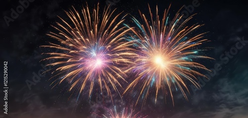 Fototapeta premium Colorful firework burst with shimmering particles, colorful fireworks,...