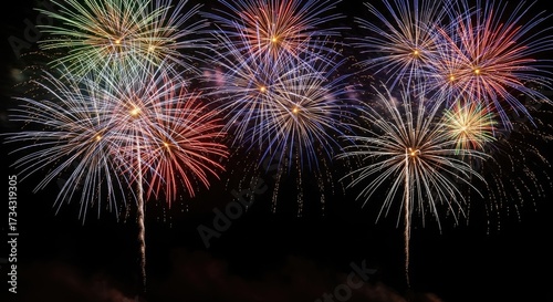 © Soem, Naklejka premium Colorful fireworks against a black sky.