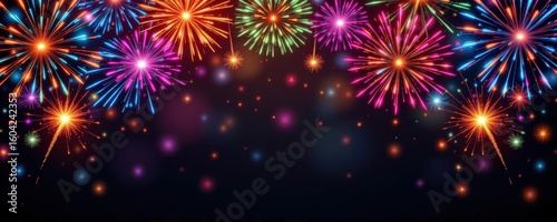 © Athiphat, Naklejka premium colorful fireworks arching from the edges toward the center