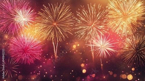 Naklejka premium Colorful fireworks bursting in the night sky, creating a festive atmosphere.