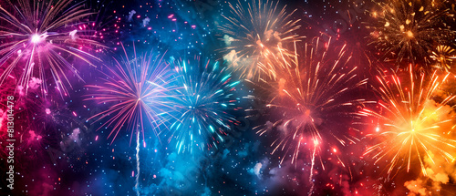 Fototapeta premium Colorful fireworks bursting in the night sky with pride flag hues, pride...