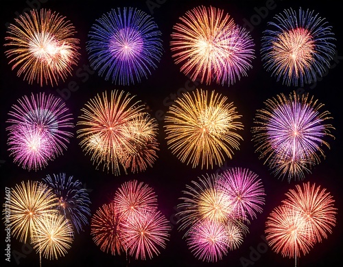 © suyadi, Fototapeta premium Colorful fireworks display collage