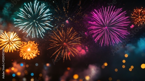 Fototapeta premium Colorful fireworks display illuminating night sky
