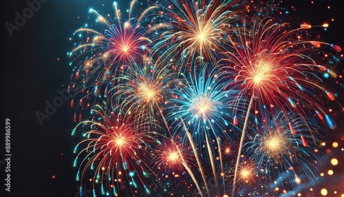 Fototapeta premium Colorful Fireworks Display in the Night Sky.