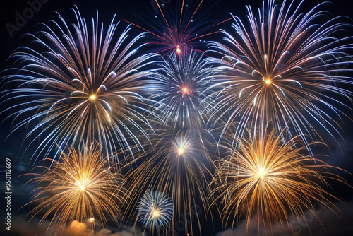 Naklejka premium Colorful Fireworks Display Lighting Up the Sky for New Year's Celebration