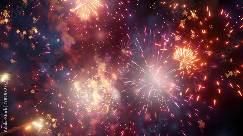 Naklejka premium Colorful fireworks display on night sky background. Pyrotechnics show, sparks...