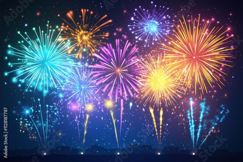 Naklejka premium Colorful Fireworks Display Over City Skyline at Night