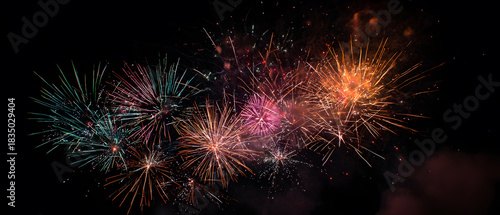 © Mohammad, Fototapeta premium Colorful Fireworks Exploding in Night Sky
