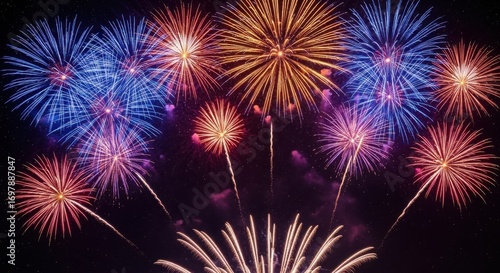 © TechNova Graphics, Fototapeta premium Colorful fireworks exploding in the night sky during a celebration