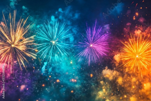 © Crestiva Creative, Naklejka premium Colorful Fireworks Festival Background2