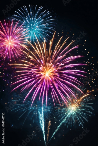 Fototapeta premium Colorful fireworks illuminate the night sky during New Year’s Eve celebrations