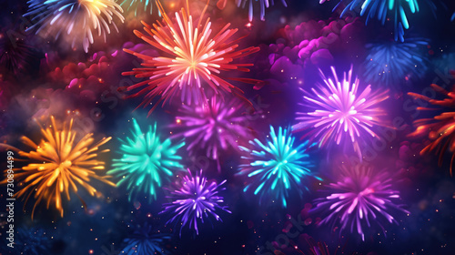 © vefimov, Fototapeta premium Colorful Fireworks in Night Sky