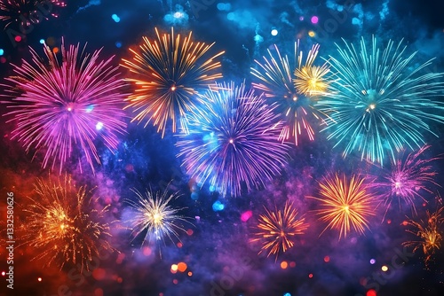 © Crestiva Creative, Fototapeta premium Colorful Fireworks Night Show Background